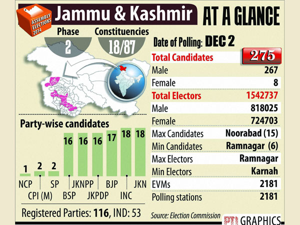 Of the 18 constituencies, Handwara in north Kashmir Kupwara district will be the focus of attention as separatist-turned-mainstream politician Sajad Gani Lone is making debut in Assembly elections after unsuccessfully contesting the Lok Sabha polls in 2009.