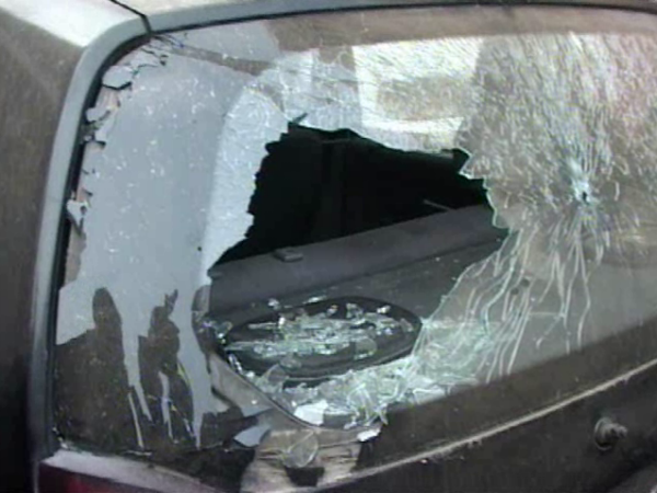 The rear of a vehicle smashed by the blast in Srinagar on Saturday.