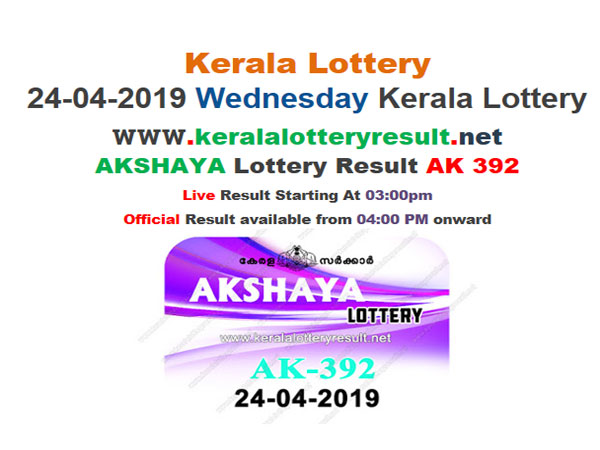 Thiruvananthapuram, Apr 24: The Kerala Lottery Akshaya AK-392 lottery result today has been declared today. The results are available on the official website.