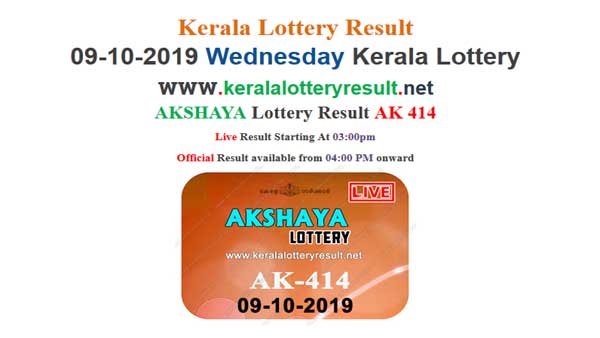 The first prize is Rs 60 lakh. The second and third prizes are Rs 5 lakh lakh and Rs 1 lakh respectively. There is a consolation prize of Rs 8,000. The fourth, fifth, sixth and seventh prizes are Rs, 5,000, 2,000, 1,000 and 500. The 8th prize is Rs 100. The result are available on https://www.keralalotteryresult.net/2019/10/kerala-lottery-result-09-10-2019-akshaya-ak-414.html