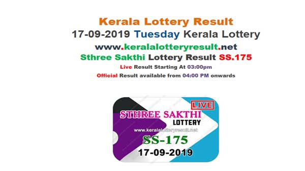 There is a consolation prize of Rs 8,000. The fourth, fifth, sixth and seventh prizes are Rs, 2,000, 1,000, 500 and 200. The 8th prize is Rs 100. The result are available on https://www.keralalotteryresult.net/2019/09/kerala-lottery-result-17-09-2019-sthree-sakthi-ss-175.html