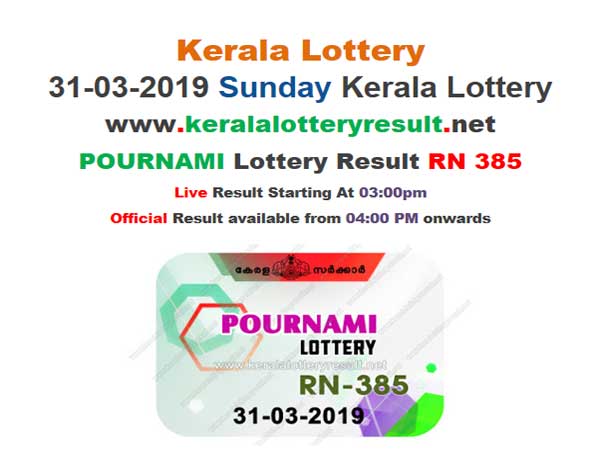 Thiruvananthapuram, Mar 31: The Kerala Today Lottery Results Pournami RN-385 Today lottery result has been declared today. The results are available on the official website.