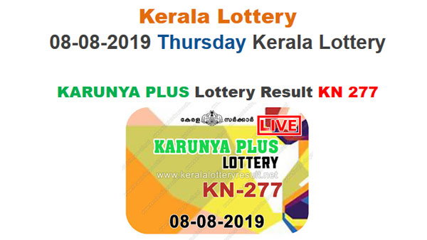 The first prize is Rs 1 crore. The second and third prizes are Rs 10 lakh and Rs 1 lakh respectively. There is a consolation prize of Rs 8,000. The fourth, fifth, sixth and seventh prizes are Rs, 5,000, 2,000, 1,000 and 500. The 8th prize is Rs 100. The result once declared will be available on https://www.keralalotteryresult.net/2019/08/ kerala-lottery-result-08-08-2019-karunya-plus-kn-277.html
