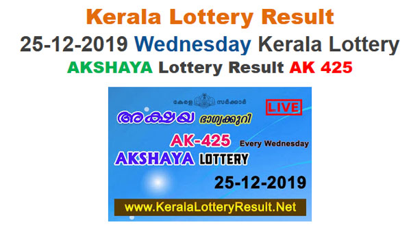 The first prize is Rs 60 lakh. The second and third prizes are Rs 5 lakh and Rs 1 lakh respectively. There is a consolation prize of Rs 8,000. The fourth, fifth, sixth and seventh prizes are Rs 5,000, 2,000, 1,000 and 500. The 8th prize is Rs 100. The result once declared will be available on https://www.keralalotteryresult.net/2019/12/Kerala-Lottery-Result-25-12-2019-Akshaya-AK-425.html.