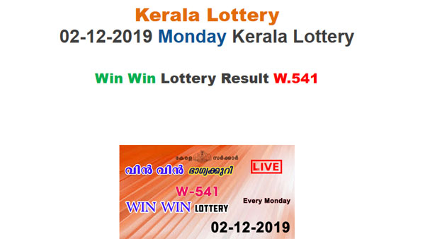 Kerala State Lottery Today Result: Win Win W-541 official result