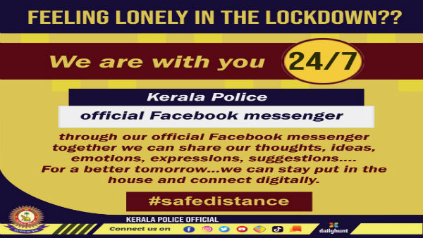 This is a message that the Kerala police has put out amidst the 21 day lockdown to fight the coronavirus spread. The Kerala police said that through the official Facebook messenger.
