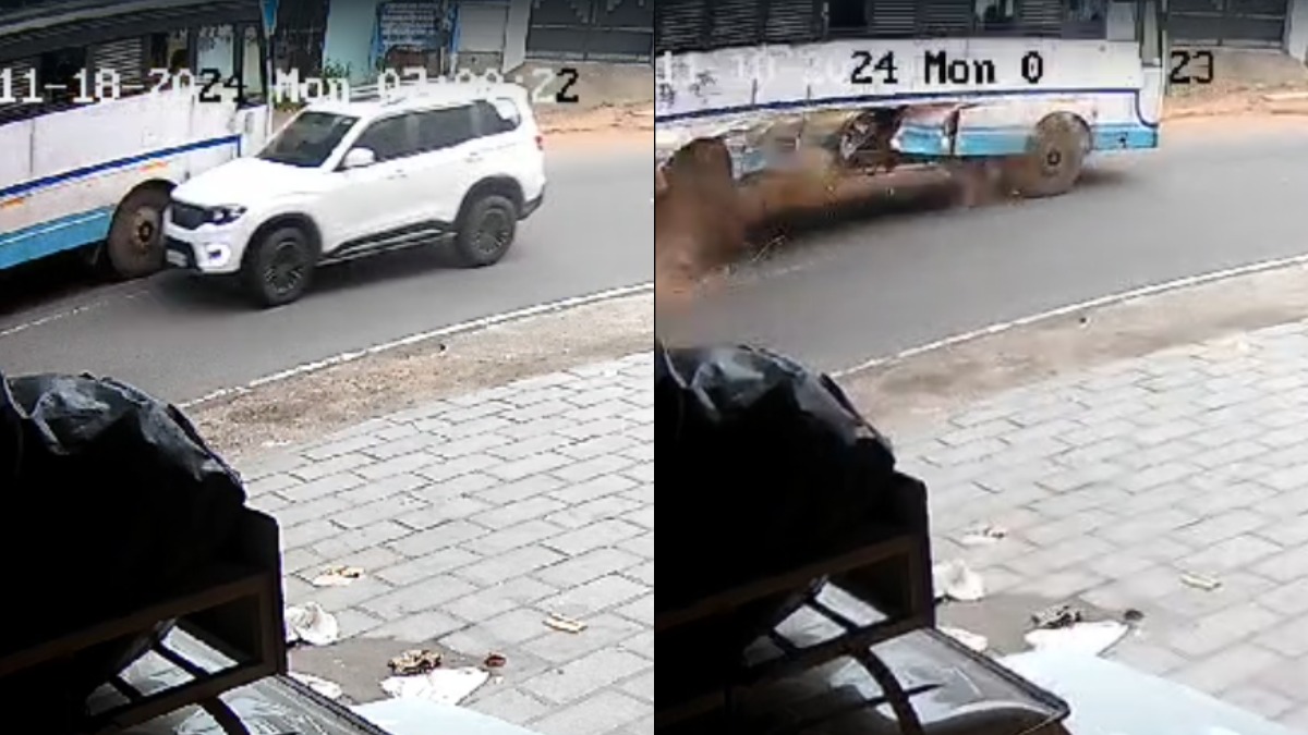 In a shocking incident, the rear axle and wheels of a KSRTC bus detached after being struck by a speeding SUV in Kottarakkara in Kerala on Monday morning. The incident, captured on CCTV, occurred around 7 a.m. at Pulamon, when the bus was en route from Kottarakkara to Punalur.